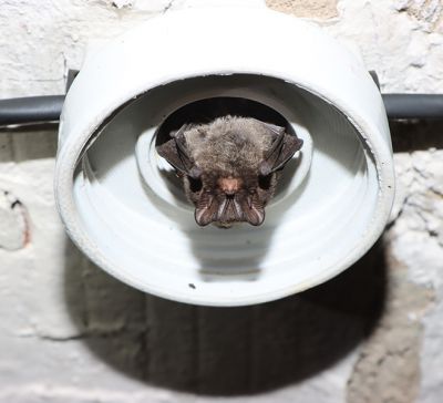 Manchmal hängen sie aber auch – wie hier – in einer Lampe. Die sogenannte „Glühbirnenfledermaus“ 😃 Das ist doch mal eine echt fledermausfreundliche Energiewende 💡🦇